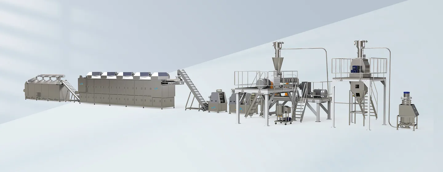 We have over 30 years of experience in the manufacturing of extruded foods and are familiar with global development trends. Through close cooperation with you, we provide you with a one-stop solution that suits you, including full process design, workshop layout design, and workshop construction guidance.