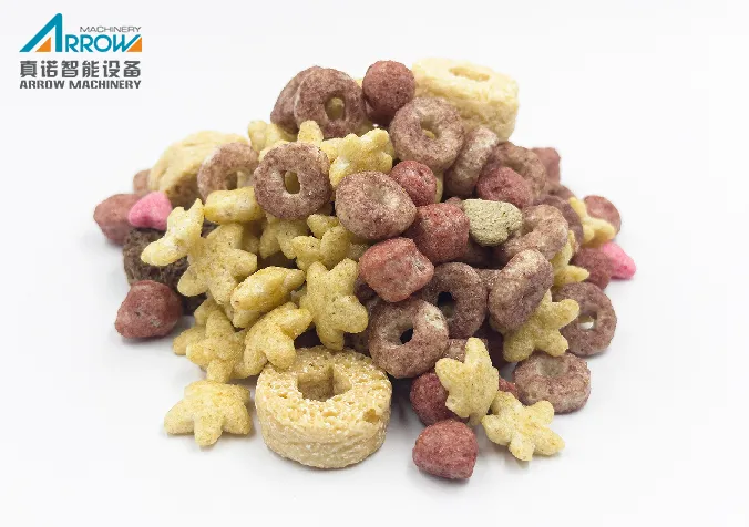 The breakfast cereal corn flakes solution is based on carefully selected cereal powders such as corn, rice, wheat, oats, and more. By using a mixing and twin-screw extrusion puffing machine for extrusion molding, tablet pressing, pre drying, uniform baking, spraying, deep drying and other processes, various shapes of products are ultimately created, such as thin sheets, rings, balls, moon shapes and rice crisps, meeting the diversified needs of the market for healthy and delicious breakfast grains.