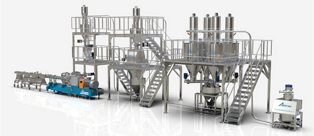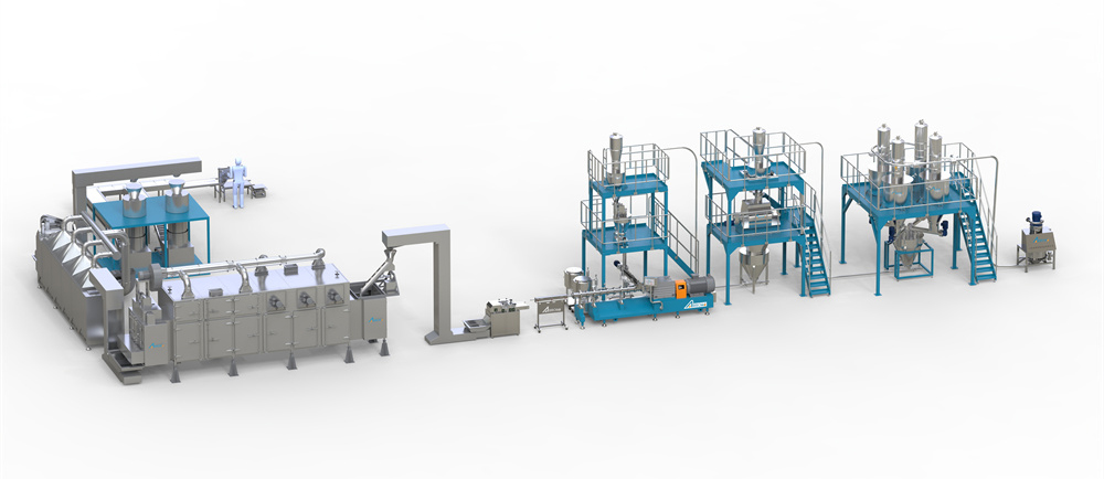 Automatic flours handing,dosing sytem--Mixing --Conditioning---Extrusion---Shaping --- Crushing(For grits) --- Sifting---Drying---Cooling---Packing