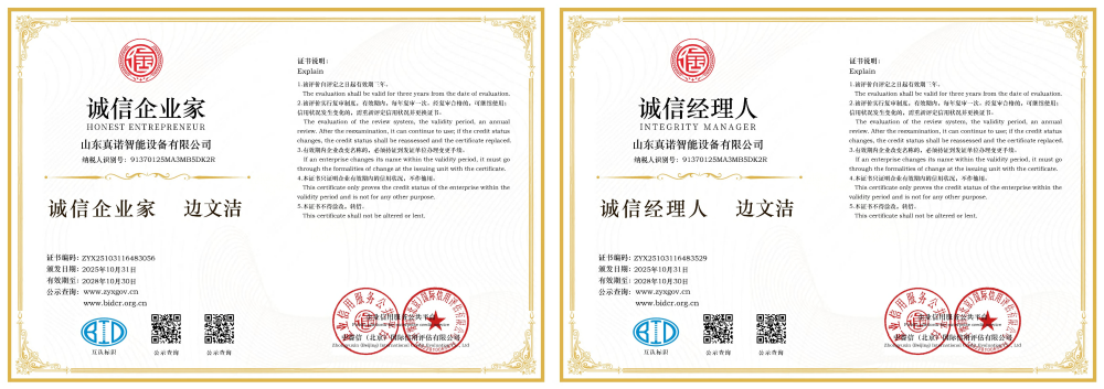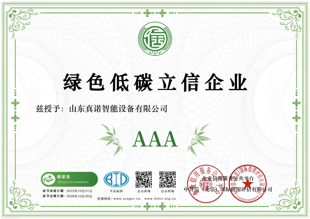 山东真诺智能设备有限公司始终将诚信作为企业发展的核心价值观。此次荣获的多项AAA级认证,涵盖了信用、质量、服务、合同履行等多个维度,包括AAA信用企业、AAA质量服务诚信企业、AAA重合同守信用企业等十余项荣誉。